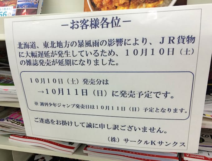 地方はコミックや雑誌 というか本 の発売日が2日 3日遅れるらしい てんつまっ