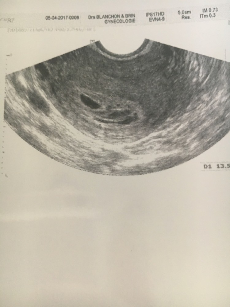 Par la perte. Lorsqu’une telle situation se présente, il faut donc repasser par la case hôpital, case que nous avions mise très loin derrière nous depuis les examens médicaux que nous avions subis, et que je détaillerai dans une prochaine chronique. L'aspect échographique du tout début de grossesse.