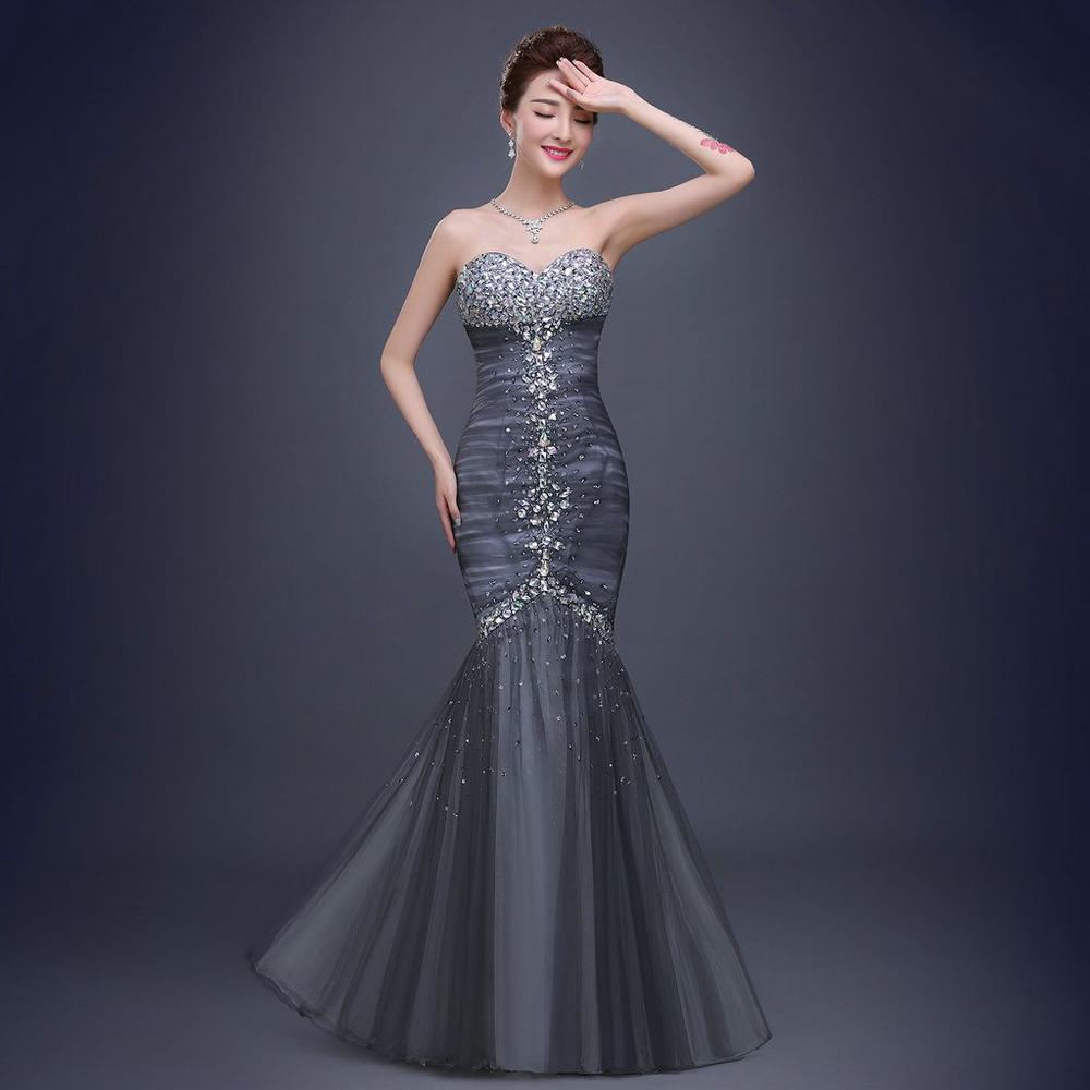 Formal Dress New Fashion Evening Dress Long Mermaid Sweetheart Sleeveless Luxury Crystal Beading Fishtail Dinner Noble Prom Dress Dr1041gry