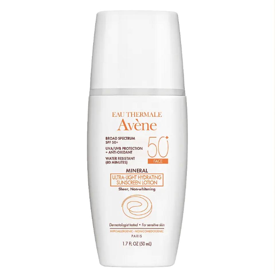 Specifically designed for oily and acne-prone skin types, this non-greasy SPF works to absorb pore-clogging oil. Non-comedogenic oils promote suppleness in dry skin and control acne-prone oily skin. Eau Thermale Avène Mineral Ultra-Light Hydrating Sunscreen Lotion SPF 50+.