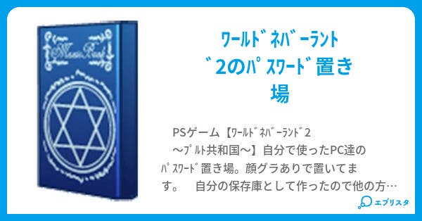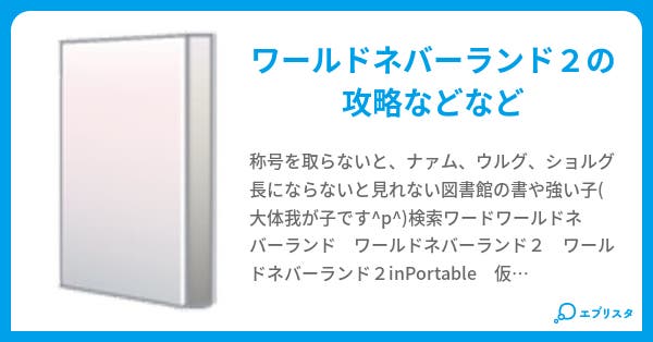 Pspスレに投下されたパスの保管ページです。 元の書き込み以外にも、パスチェックした情報を一部勝手に載せています。 (名前 年齢 あれば才能 顔番号 性格を記載。顔番号は公式サイトで見られます) 女性. こんにちは。 ここでは「ワールド・ネバーランド2 ~プルト共和国物語~」のプレイ日記を載せています。 現在、 体験版ジェイムス国からフランコ国までの42年をゆるく再現(? )する ことをしています。 まぁ、でも再現なんてできません_(:3」∠)_. メビウス Mobius (メーカーサイトへ) 商品コード:.