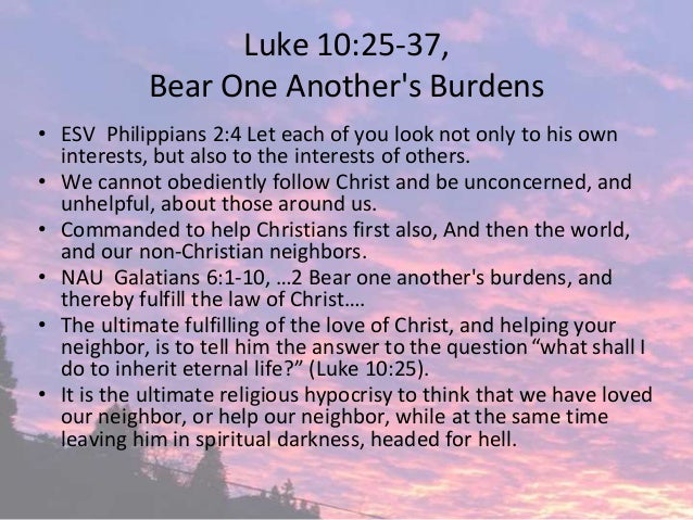 The Samaritans were particularly hated in Jesus' day. 37And he said, He that shewed mercy on him. 10:25-37 If we speak of eternal life, and the way to it, in a careless manner, we take the name of God in vain.