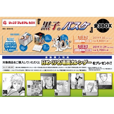ジャンプショップ Jump Shop 公式 予約受付中 ジャンププレミアムbox 黒子のバスケ Box1 4 800円 税 Box2 4 800円 税 Box3 5 700円 税 黒子のバスケ が全16巻の文庫判再編集版で登場 藤巻先生の描き下ろしイラストや豪華特典も Jump