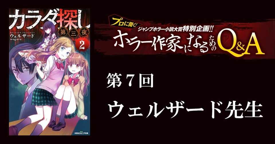 ট ইট র jump j books編集部 ホラー小説大賞 応募者必見 プロに聞く ホラー作家になるためのq A 更新 第7回は カラダ探し が少年ジャンプ で大人気のウェルザード先生にお答えいただきました 今すぐチェック T Co Dtsywchao9