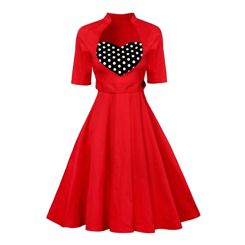 Buy Fery6u87o Casual One Piece Dress Female S Summer V Neck Polka Dot Short Sleeve Vintage Wrap Women Dress With B Red At Amazon In
