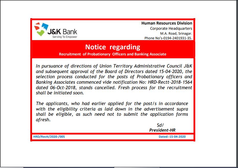 Banking Job Vacancy J K Bank Releases Notification For Banking Associate Po Recruitment Times Of India