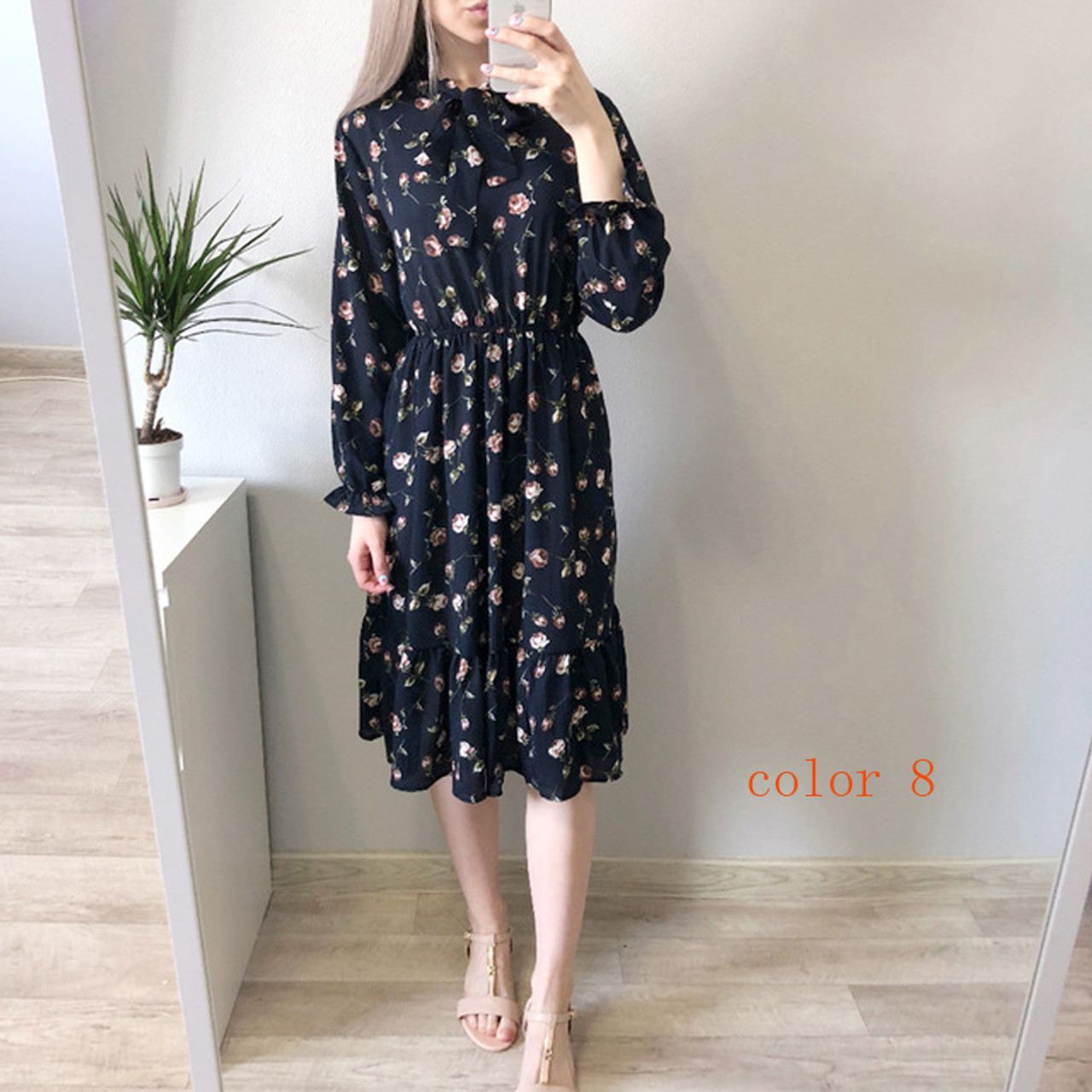 Chiffon High Elastic Waist Party Dress Bow A Line Women Full Sleeve Flower Print Floral Bohemian Dress Female Vestido Plus Size Onshopdeals Com