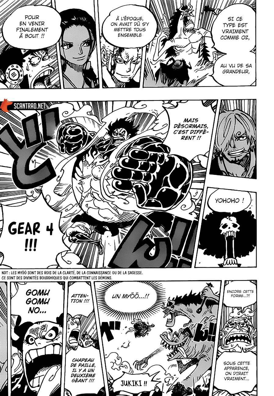 In one of his tweets, the tipster shared a scanned panel of the upcoming chapter showing the action at the Skull Dome roof. Scan One Piece 993. Le rêve de Wano (V2) Chapitre 992:.